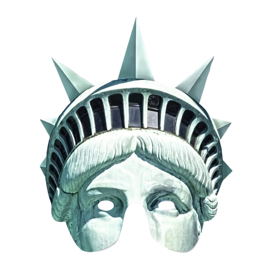 Ce Masque statue de la liberté en carton plat complétera à merveille un costume en l'honneur des Etats-Unis d'Amérique.