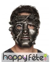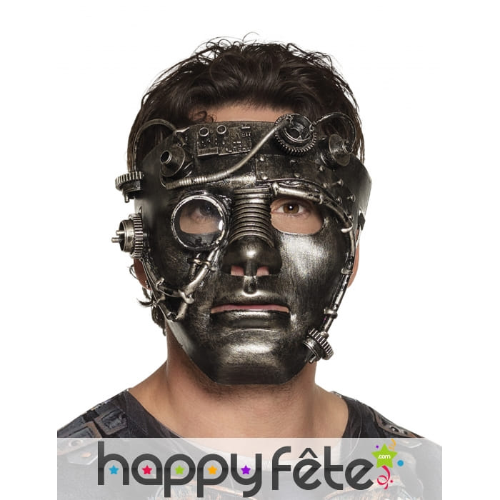 Le masque en plastique style Steampunk aspect métal avec engrenages est conçu pour les adultes.