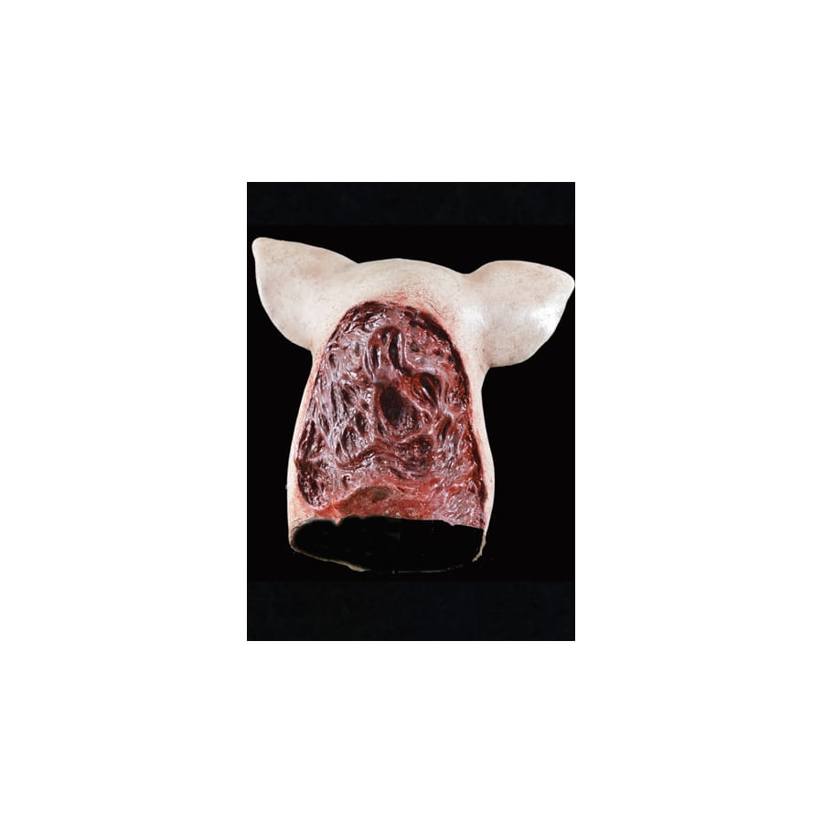 Rien de plus impressionnant et de plus effrayant que ce masque de tête de cochon coupée. Il sera parfait si vous comptez assister à une soirée Horreur, Animaux,... ou pour fêter Halloween. Il est de couleur rose, fait en latex, représentant une tête de cochon très bien imitée, avec deux grandes oreilles, son groin et ses yeux. Mais le plus impressionnant, c'est que la tête a été coupée. La blessure ainsi laissée se trouvera à l'arrière de votre tête lorsque vous porterez ce masque, elle paraît ensanglantée. Sachez que ce masque vous emballera toute la tête.