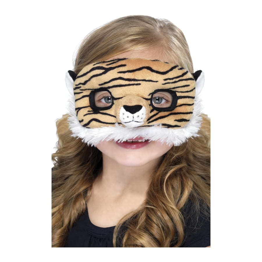 Masque de tigre pour garçon ou fille. Ce masque est de couleur orange, avec des raies noires, une bordure blanche et des oreilles noires. Aidez votre enfant à se transformer en animal de la jungle en lui offrant ce masque.