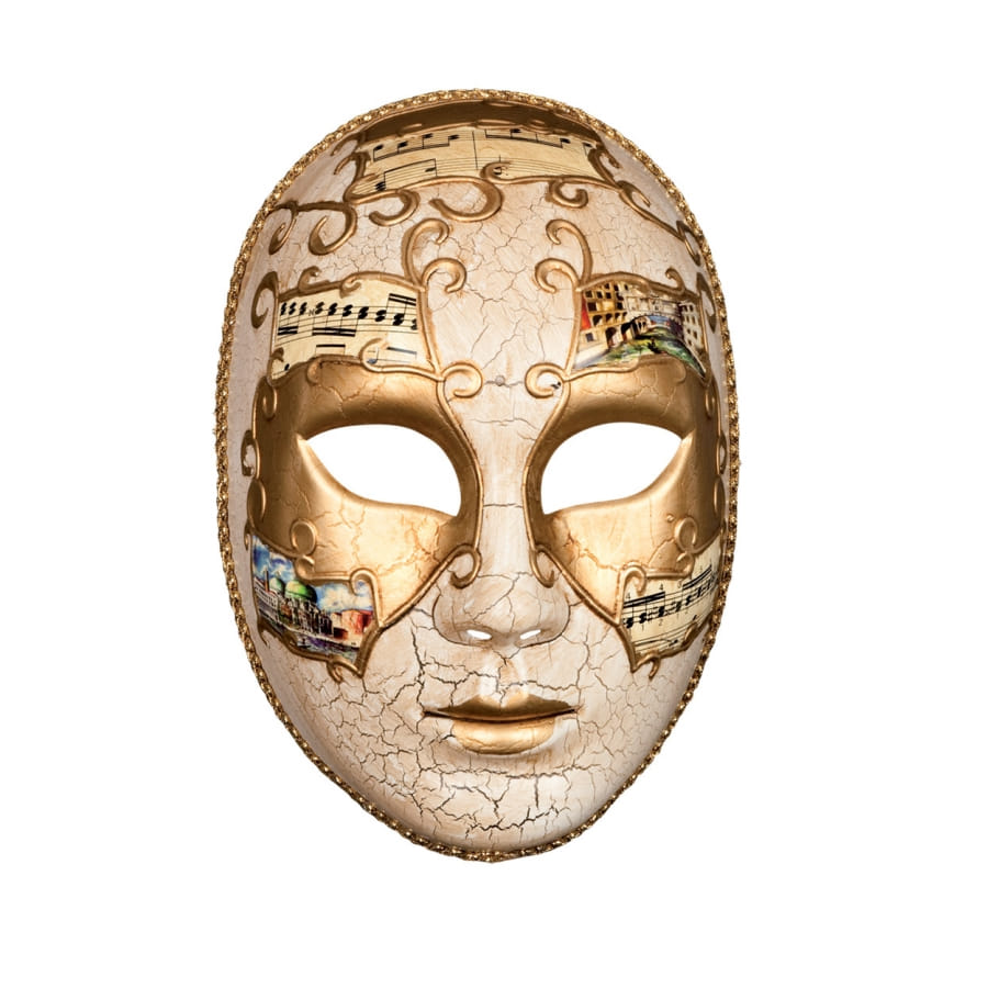 Vous aimez les objets un peu spéciaux ? Ce masque vénitien facial complet visage neutre vous fascinera de par son originalité. De couleur beige agrémenté de magnifiques motifs dorés, il est entouré d'une fine couture brodée dorée. L'accessoire mesure 25 x 16 cm de dimension et peut être utilisé comme complément de déguisement ou comme décoration. Pour cela, il est doté d'un ruban noir résistant pour la fixation ainsi que d'une attache. A noter que le masque couvre la totalité du visage et laisse des emplacements vides pour les yeux.