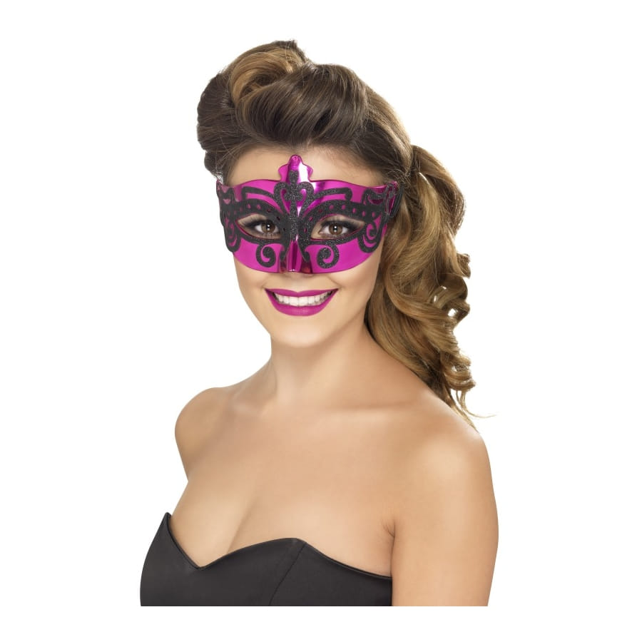 Ce masque vénitien sera parfait pour un bal masqué, une fête vénitienne ou basée sur les différentes cultures du monde. Il est rose, avec des détails de couleur noire. Il dissimulera votre visage tout en laissant paraître vos atouts.