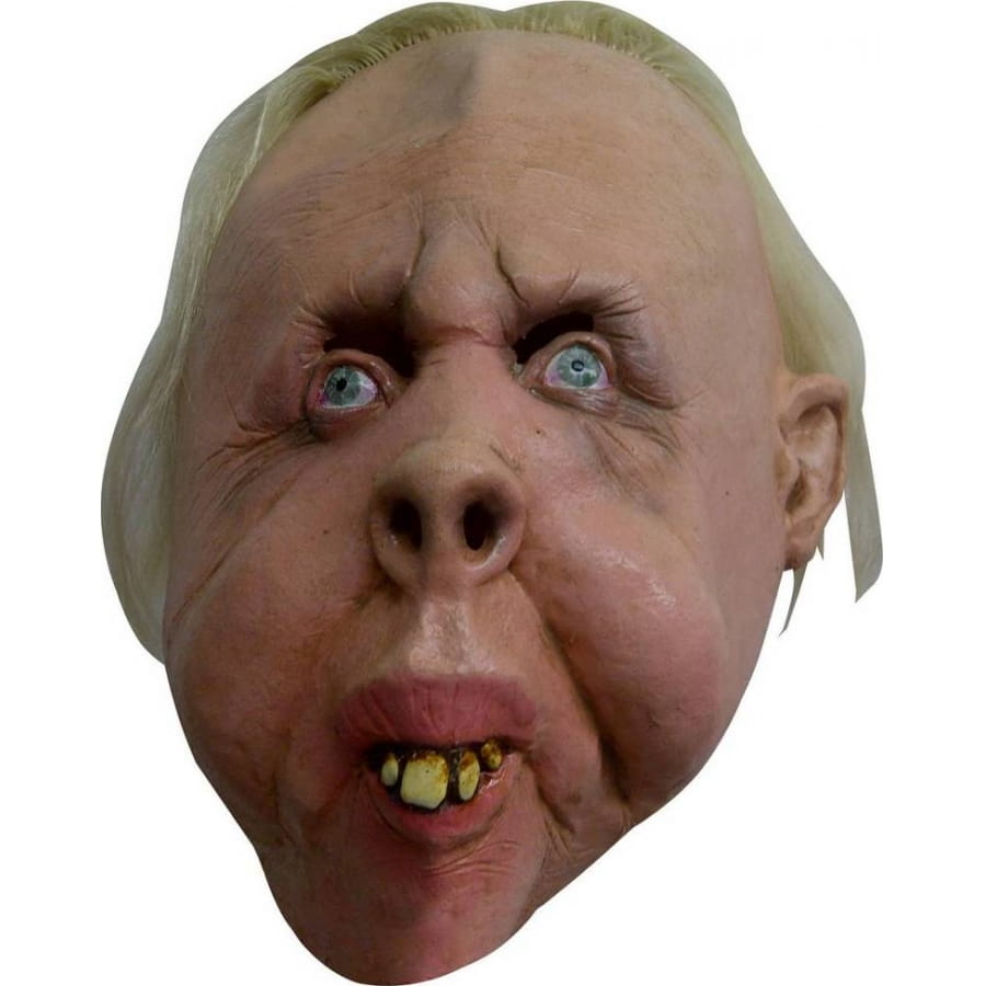 Le masque en latex, représente un visage terrifiant laissant apparaitre des rides et des dents jaunes.