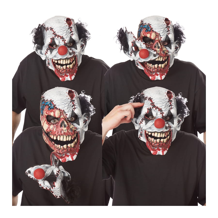 Si faire peur est votre but pour la prochaine soirée d'Halloween, ce masque vivant de clown au visage lacéré est fait pour vous. Alors coulrophobe s'abstenir car ce masque est tout simplement horrifiant avec ses parties amovibles et les cicatrices sur son visage ensanglanté. Il est de couleur blanche, rouge et noire et est en latex. Nous le proposons en taille adulte pour homme.