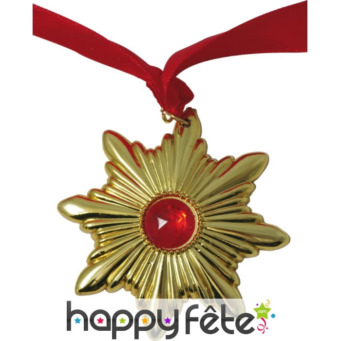 Ce médaillon fabriqué à base de plastique rigide est doré et imite le métal.