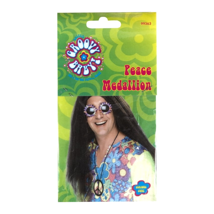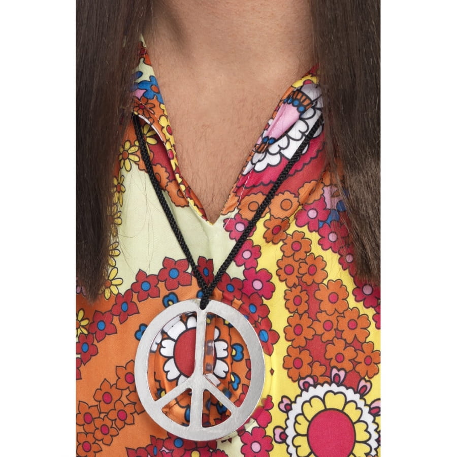 Pour incarner un babacool vous pourrez porter ce médaillon, ce médaillon de paix est de couleur argenté. Il est assez large. Vous pourrez le porter si vous incarner un hippie ou encore pour le carnaval.