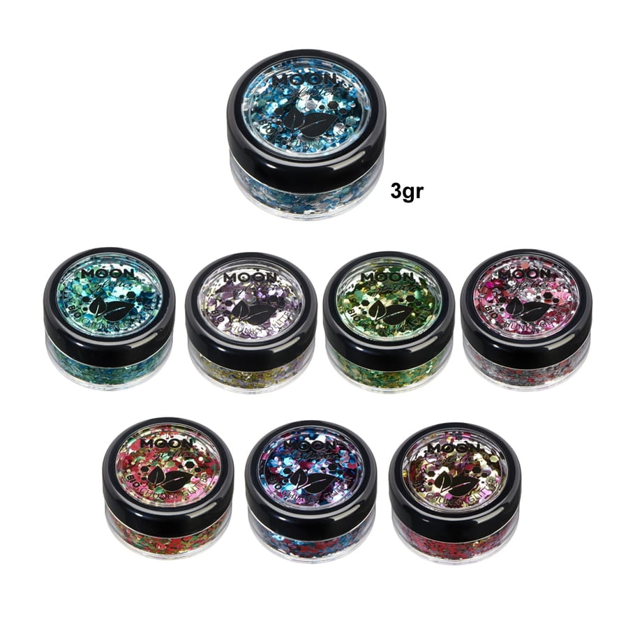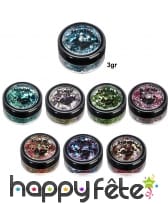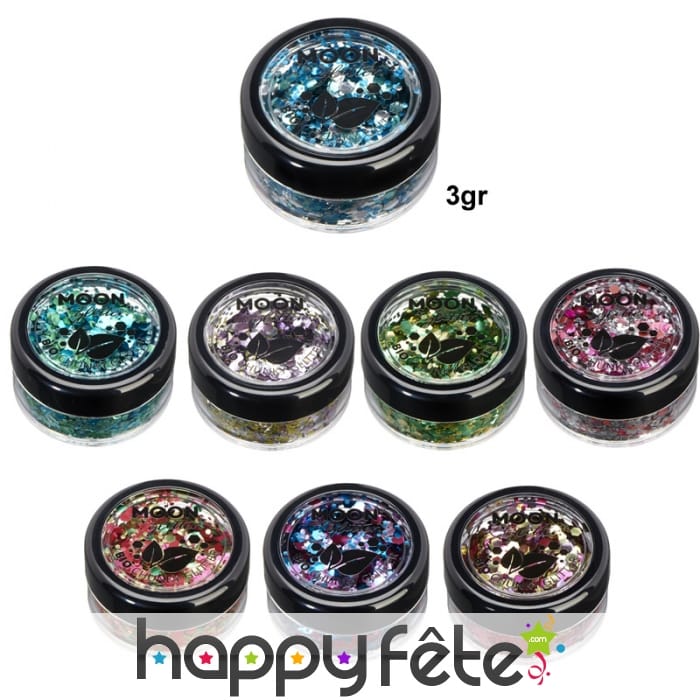 Ce Mélange de grosses paillettes cosmétiques bio, 3gr sera idéal pour un maquillage tout en couleur et sur thème varié.
