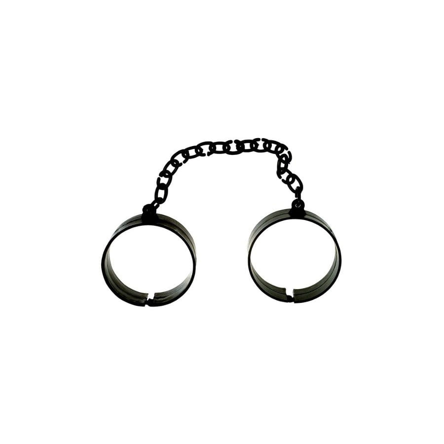 Paire de menottes de couleur noire. Cet accessoire peut servir à l'occasion d'un carnaval ou pour un enterrement de vie de garçon ou de jeune fille.