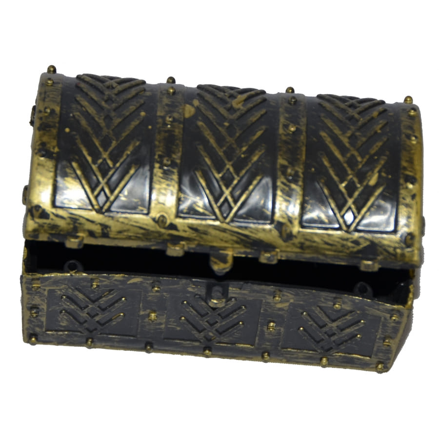 En partant explorer les nouvelles contrées, les pirates ont ramené ce magnifique coffre spécialement pour vous ! Voici un mini-coffre de pirate, de 8 x 4,5 x 5 cm de dimension. Il est de couleur or et bronze, et il est décoré de motifs impressionnants ! Il s'agit d'un très bel élément décoratif pour votre buffet. Collectionnez-en plusieurs, et marquez les places de vos invités avec pour une soirée à thème pirate. Vous pouvez également leur en faire cadeau !