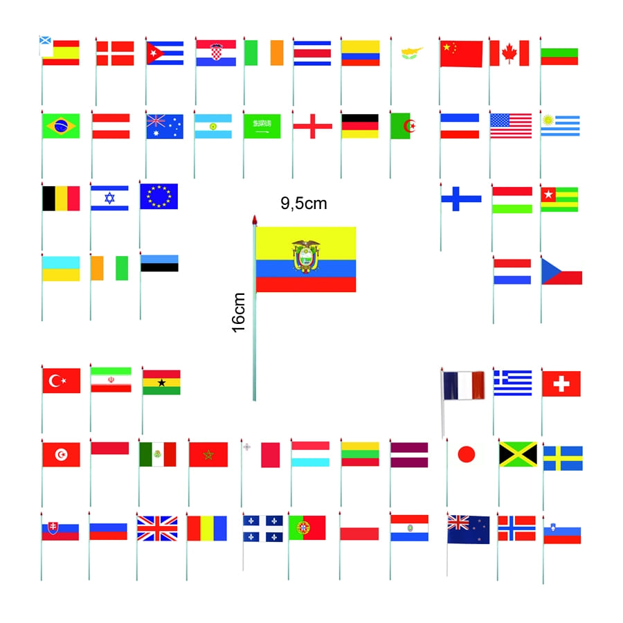 Drapeau en plastique monté sur hampe, en plastique également. Ce drapeau mesure 9.5 centimètres de haut sur 16 centimètres de large. Au moment de votre commande, vous aurez le choix entre l'Algérie, l'Angleterre, l'Autriche, le Brésil, la Bulgarie, le Canada, le Chypre, la Colombie, le Costa Rica, la Côte d'Ivoire, la Croatie, le Danemark, l'Ecosse, l'Equateur, l'Estonie, l'Europe, le Finlande, le Ghana, la Grèce, l'Hollande, l'Hongrie, l'Iran, l'Irlande, l'Israël, la Jamaïque, le Japon, la Lettonie, la Lituanie, le Luxembourg, le Malte, Monaco, la Norvège, le Paraguay, la Pologne, le Portugal, le Québec, la Roumanie, le Royaume Uni, la Russie, la Slovaquie, la Slovénie, la Suède, la Suisse, la Tchécoslovaquie, le Togo, la Turquie, l'Ukraine, l'Uruguay et la Yougoslavie. Vous pourrez l'utiliser lors d'évènements internationaux.