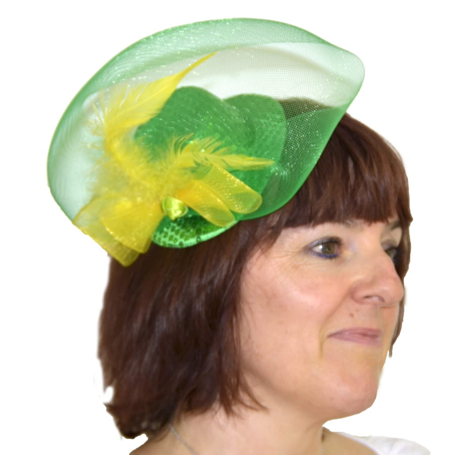 Mesdames, voulez-vous passer la Saint-Patrick dans une tenue élégante dévoilant votre style raffiné ? Voici la solution. Nous vous conseillons vivement d'opter pour ce mini-haut de forme Catherinette, de couleur verte. Il est muni d'un joli voile assorti. Customisez cet accessoire selon vos goûts, il va assurément vous inspirer ! Aussi élégante que la reine d’Angleterre! le modèle varie légèrement selon les arrivages.