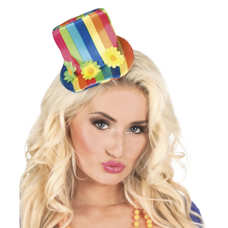 Chic et original, ce mini haut de forme ligné multicolore est un chapeau pour adulte.