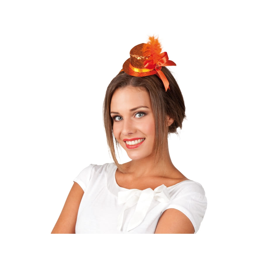 Lors du prochain carnaval ou de la soirée à thème chic et glamour, vous pouvez mettre ce mini haut de forme orange sur serre-tête.