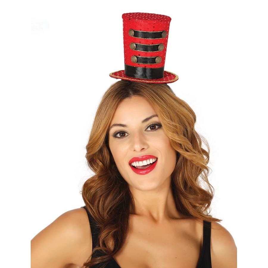 Égayez une soirée entre amis en y ajoutant bonne humeur et ambiance de cirque, grâce au mini haut de forme rouge Madame Loyal pour femme.