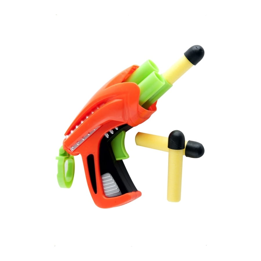 Mini pistolet de couleur jaune, noire, rouge et verte, pour garçon, livré avec 3 cartouches jaunes et noires. Ce pistolet sera l'arme favorite de votre enfant au premier regard!