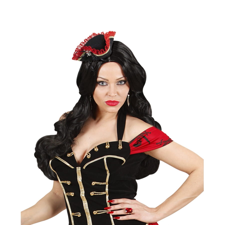 Le mini tricorne de pirate noir et rouge est un accessoire destiné aux femmes.