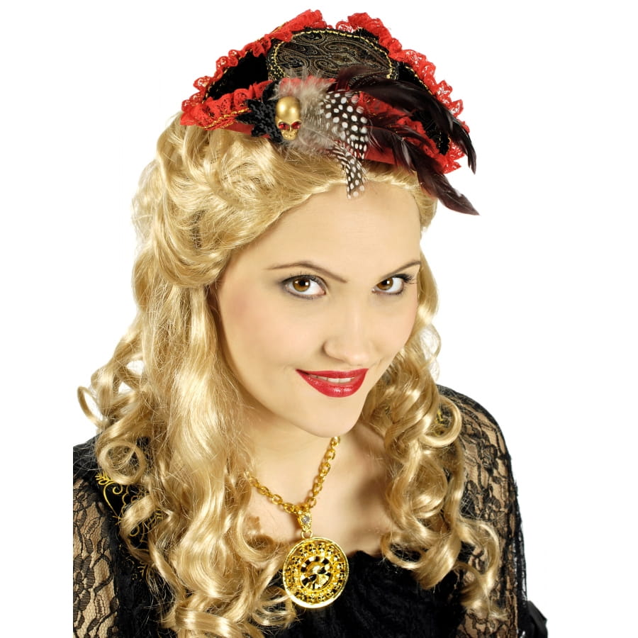 Le mini tricorne noir rouge est conçu pour les femmes.