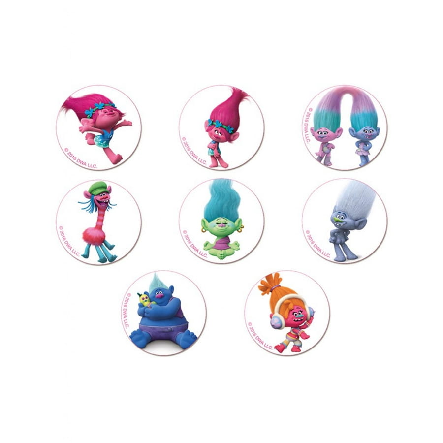 Les Trolls vont faire la joie de votre enfant pour son goûter d'anniversaire. Disposez ces minis disques en sucre Trolls sur vos cupcakes d'anniversaire. Cet article comprend 16 mini disques en sucre multicolores, à l'effigie des Trolls. Chacun d'eux fait 3,4 cm de diamètre. Ils sont sans OGM mais contiennent de la lécithine de soja qui peut être allergène pour certains.