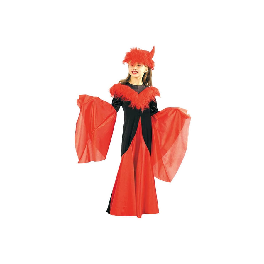 Métamorphosez votre petite fille en Miss Dracula le temps d'une soirée déguisée ou pour Halloween. Ce costume est composé d'une robe rouge et noire et d'une coiffe rouge sur laquelle sont fixés des cornes rouge. Ce déguisement est disponible en taille 116 cm.
