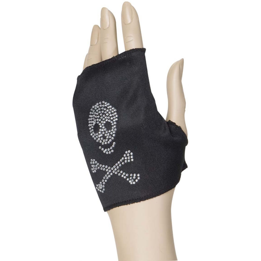 Cette mitaine noire avec tête de mort pour femme complète votre tenue pour avoir un total look. La tête de mort en strass sur le devant ainsi que sa couleur noire correspondent très bien à un déguisement pour Halloween. Le fait qu'elle ne couvre pas tous vos doigts vous permettra de vous sentir à l'aise dedans et ne gênera pas vos mouvements. Alors, n'hésitez pas, même vos mains méritent leur part de déguisement!