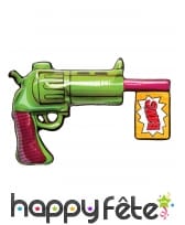 Il aura fière allure avec cette mitraillette en plastique qui simule des bruits de tirs.