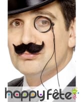 Monocle sans verre avec corde de couleur noire. Ces accessoires complètent à merveille une tenue d'aristocrate pour un carnaval.