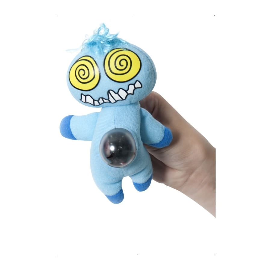 Monstre à presser à expression étourdie, de couleur bleue et yeux jaunes. Pressez sur la poupée et faites sortir son ventre transparent pour voir le contenu.