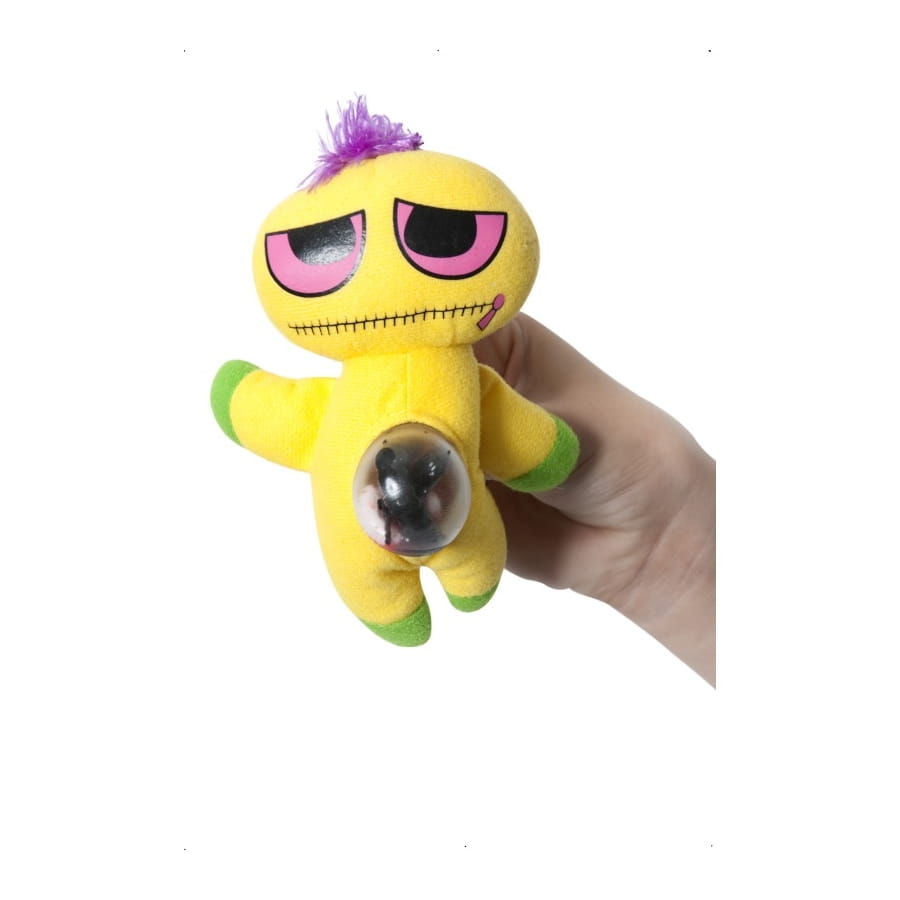 Poupée à presser souple et maléable pour homme, femme, adolescent, adolescente, garçon ou fille. Elle est de couleur jaune, noire, verte et violette. Servez-vous-en comme anti-stress ou comme décoration d'Halloween.