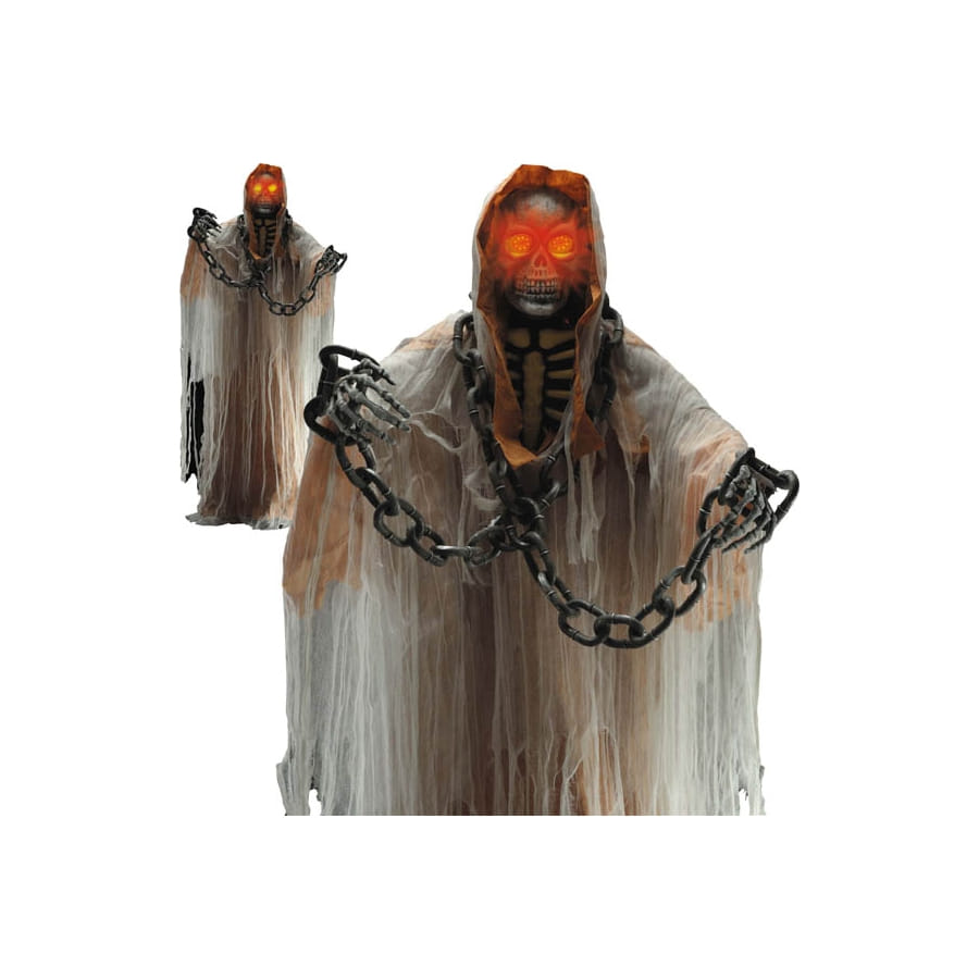 Suspension en forme de fantôme équipé de lumière LED et mesurant 70 centimètres de haut. Il est livré avec piles et servira de décoration parfaite pour une soirée d'Halloween ou pour un thème similaire.