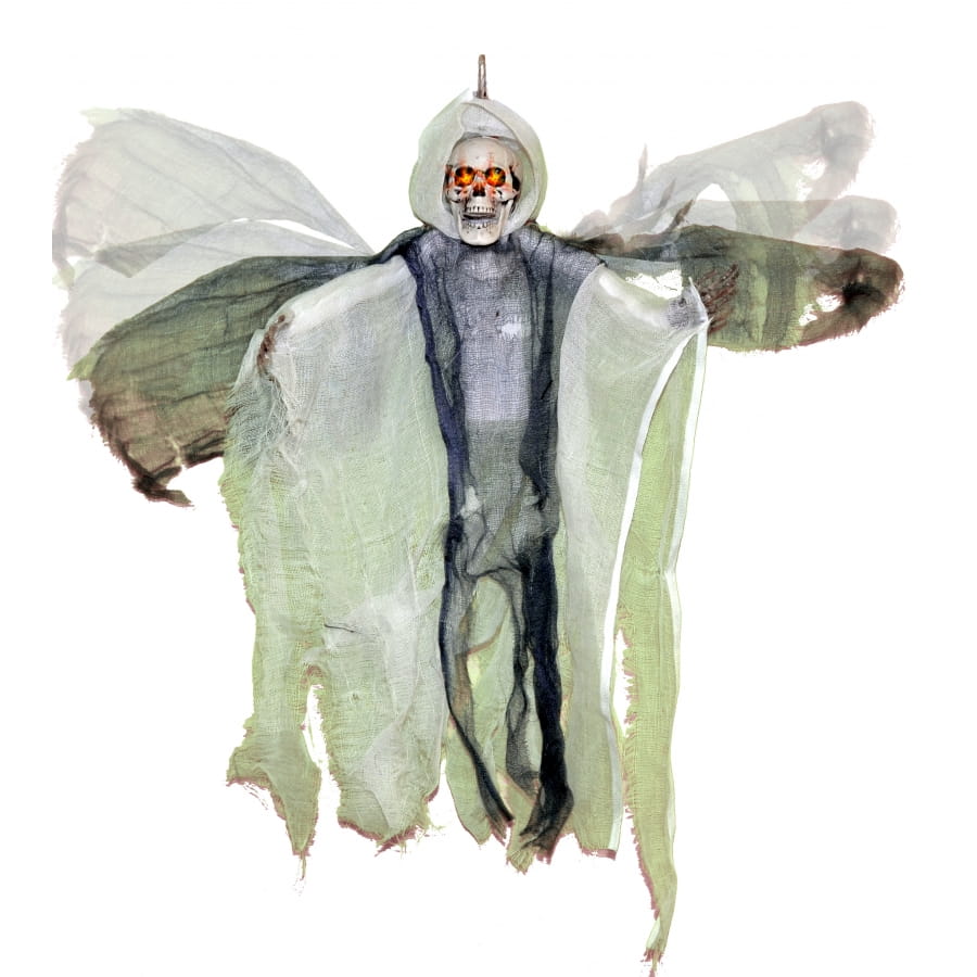 Ne résistez pas à la folie d'Halloween ! Il vous faut absolument élaborer puis peafiner votre décoration d'intérieur pour créer une ambiance digne d'un film d'horreur. Commencez par ce superbe monstre squelette "Grim reaper" de 46 cm de dimension. Il ne s'agit pas que d'un monstre blanc et noir à allure effrayante. Il peut aussi battre des ailes, crier et illuminer ses yeux. Il vous sera donc fourni avec 3 piles AAA.