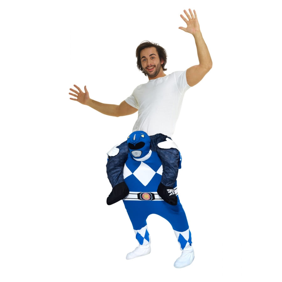 Il s'agit d'une combinaison donnant l'illusion très réaliste d'un homme porté sur les épaules d'un Power Rangers.