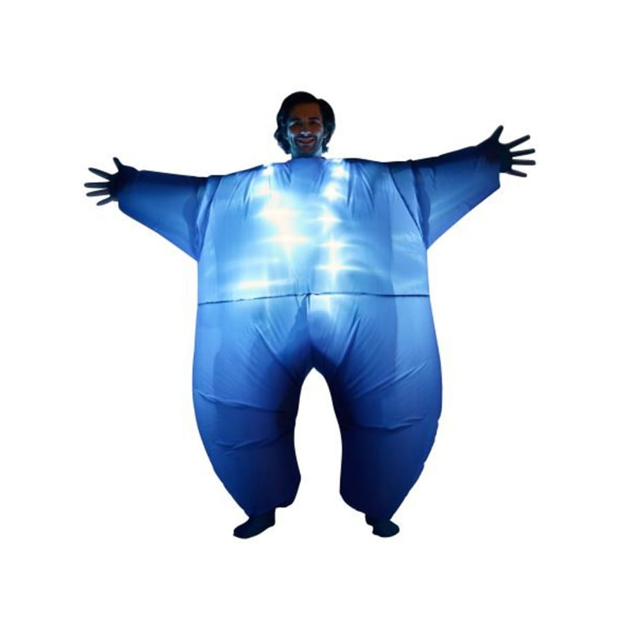 Soyez le plus intrigant de la soirée dans votre Morphsuit gonflable bleu et lumineux pour adulte.