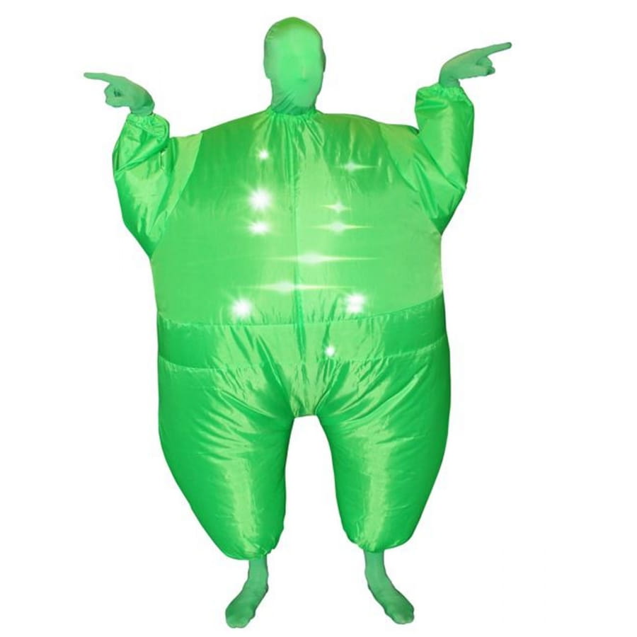 Pour un carnaval ou une soirée déguisée, découvrez ce déguisement des plus originaux : un morphsuit vert gonflable et lumineux pour adulte.