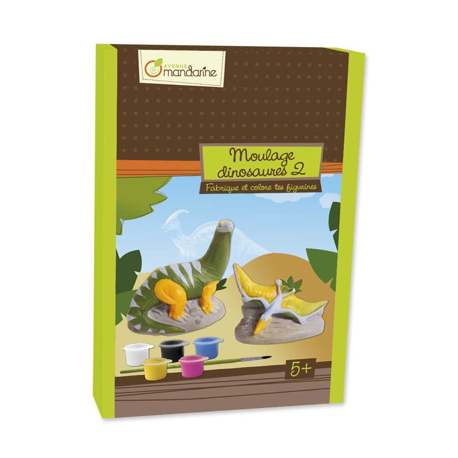 Pour lot de kermesse, pour un super cadeau d'anniversaire pour enfants, ou pour créer de belles décorations, cette boite créative de moulage dinosaures sera toujours idéale. Elle a une dimension de 16 x 23 x 5 cm. Elle est d'excellente qualité et contient : 2 moules en forme de dinosaures (en latex), une grappe de 8 peignes maintien, un pinceau, un sachet de plâtre de 250 g, 5 flacons de peinture acrylique de 2.5 cm avec les 5 couleurs de base : cyan, magenta, jaune, blanche et noire, un doseur plastique, une palette plastique, un set de table et une notice pour mélanger correctement les couleurs.
