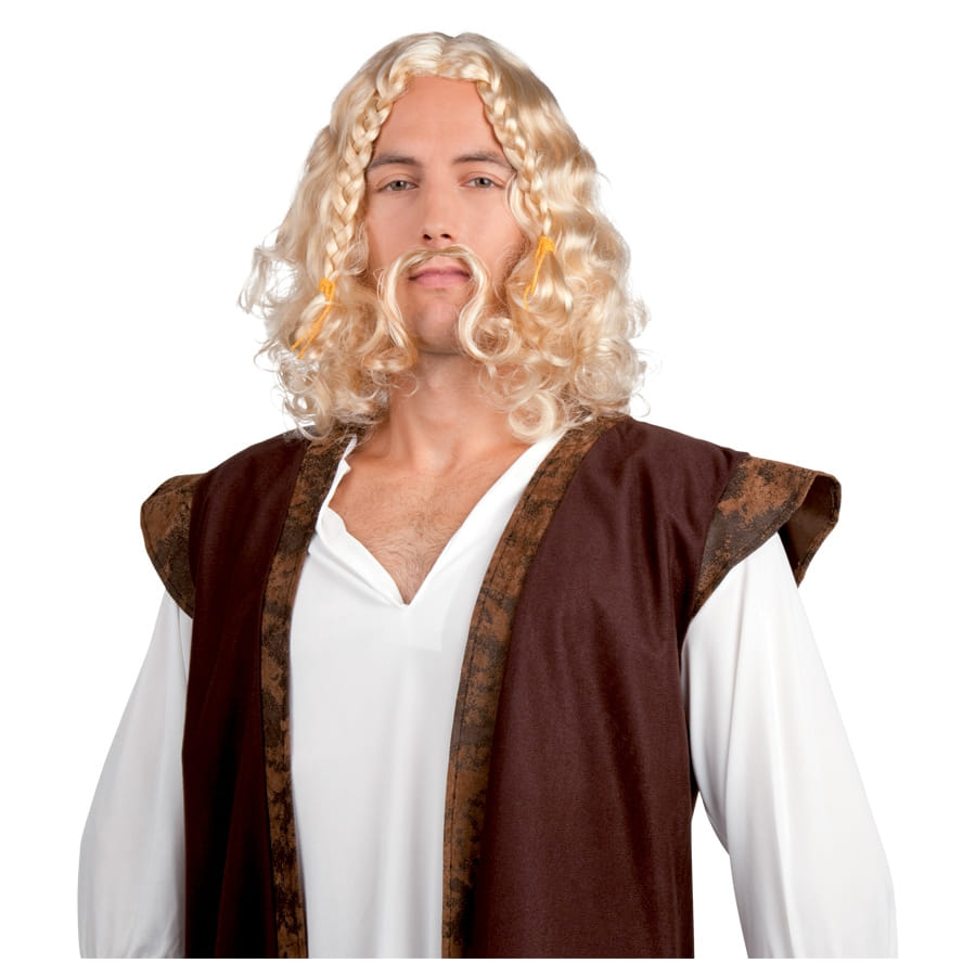 Spécialement pour les hommes, cette moustache et perruque blonde ondulée de viking vous est proposée pour compléter votre tenue de fête.