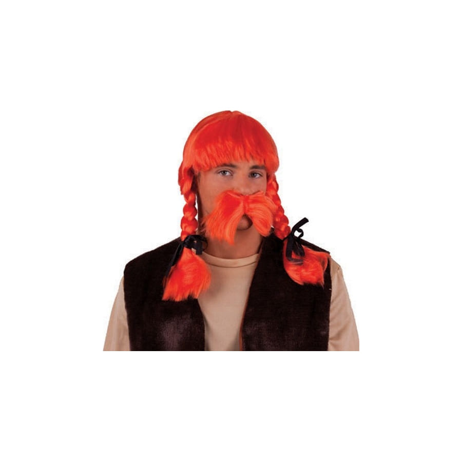 Le temps d'un carnaval ou d'une fête déguisée, incarnez le plus connu des Gaulois en accessoirisant votre déguisement de cette Moustache et perruque orange avec tresses, adulte