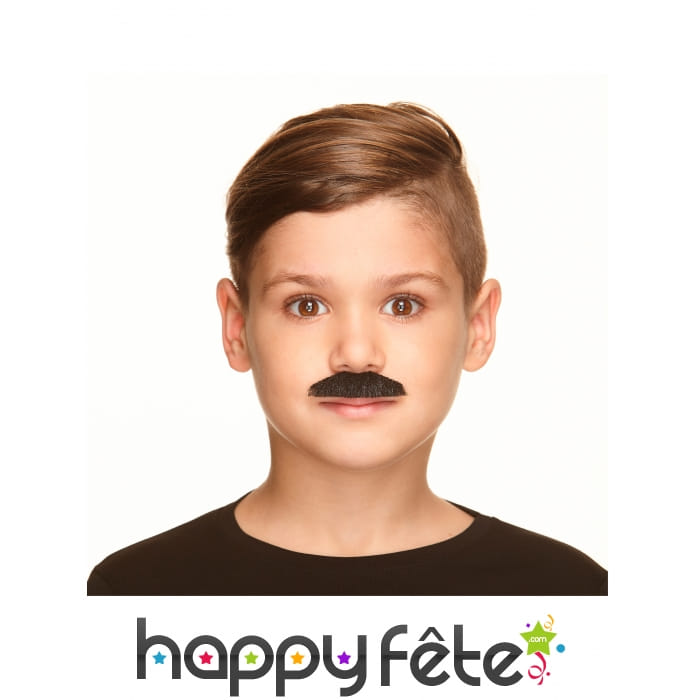 Il s'agit d'une petite moustache pyramidale de couleur noire, faite avec des mèches synthétiques.
