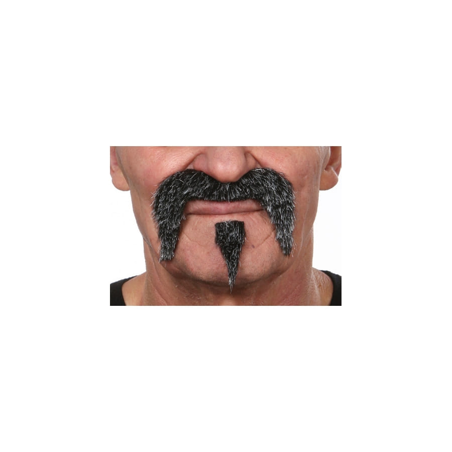 Bienvenue dans un salon de relooking ! Vous voilà prêt à vous transformer en véritable cowboy de western. Chemise, jean, bottes, chapeau vous vont à ravir, mais il vous manque le petit plus ! Nous vous conseillons cette moustache de couleur noire et blanche. Elle est légèrement tombante, et arbore un look poivre et sel époustouflant ! Elle est fournie avec une barbichette, et le tout se colle automatiquement à votre peau. De fabrication européenne, cet accessoire vous transformera en personnage digne du cinéma américain.