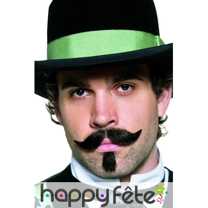 Pour vous donner une autre allure, cette moustache vous apportera de la classe, de l’élégance pour votre soirée. Vous pourrez vous déguiser en shérif et partir a la conquête de l'ouest. De couleur noir, elle est courte et se courbe vers le haut.