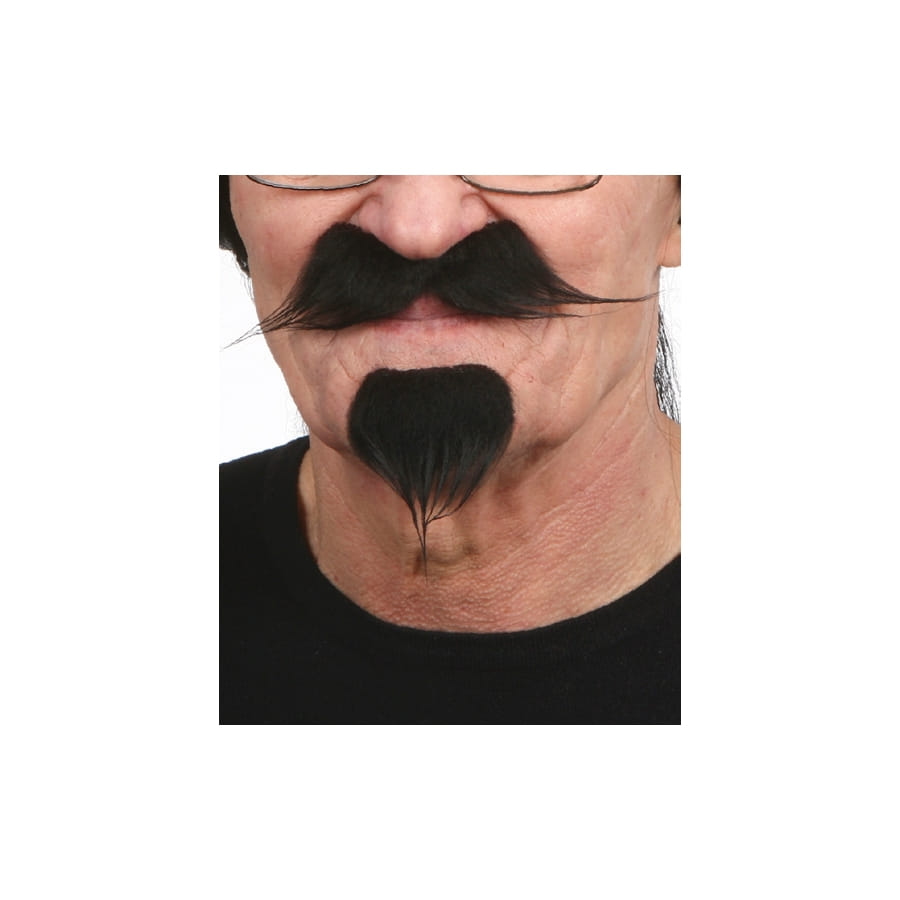 "Je te tiens, tu me tiens par la barbichette !". Vous pourrez désormais participer à ce jeu insolite grâce à ce kit moustache et bouc que nous vous proposons. Il s'agit d'une belle moustache noire et d'un bouc noir, de 17 cm x 9,5 cm de dimension. Ils sont tous deux adhésifs et de fabrication européenne. Ils sont idéaux pour personnaliser une tenue, et si vous voulez changer de tête, rajoutez-y une bonne paire de lunettes !