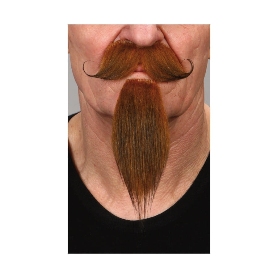 Soyez beau et élégant comme un mousquetaire. Cette moustache s'allie parfaitement avec un authentique costume de mousquetaire, pour Halloween. Il s'agit d'une moustache remontée sur les bords et recourbée aux extrémités. De couleur rousse, elle est fournie avec un bouc ou une barbichette assortie, tous deux pouvant adhérer automatiquement à la peau. Le tout mesure 10,5 cm x 17 cm et c'est un article fabriqué en Europe.