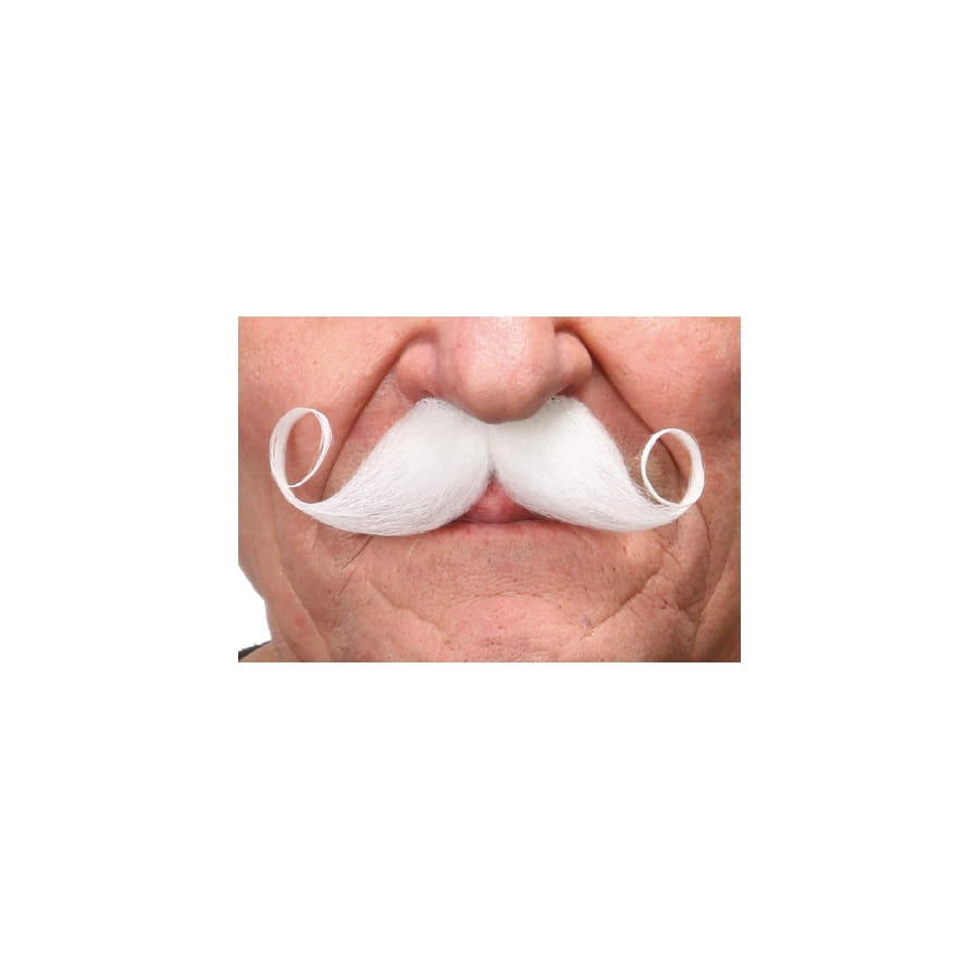 Connaissez-vous la moustache française? Eh bien, c'est une moustache avec des bords moins épais que le reste de la moustache et qui ont été recourbés vers le haut, comme la moustache du célèbre personnage d'Agatha Christie, Hercule Poirot. Ici, elle est de couleur blanche, pour ceux qui désirent se déguiser en un vieux français ou pour créer le personnage du fameux détective dans sa vieillesse. Elle est de fabrication européenne, est également auto-adhésive et mesure 9,5 cm x 5 cm.