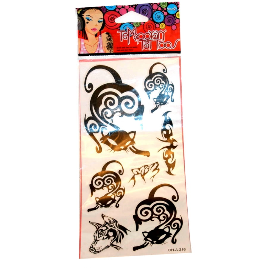 Des tatouages en folie ! Cette carte de tatoo devrait satisfaire vos envies de vous faire tatouer ! Elle mesure 95 x 175 mm, et contient plusieurs tatouages de couleur marron et noir. Vous disposerez ainsi de plusieurs motifs à porter selon les occasions. Les cartes sont vendues à l'unité et vous n'aurez pas le choix du modèle à la commande.