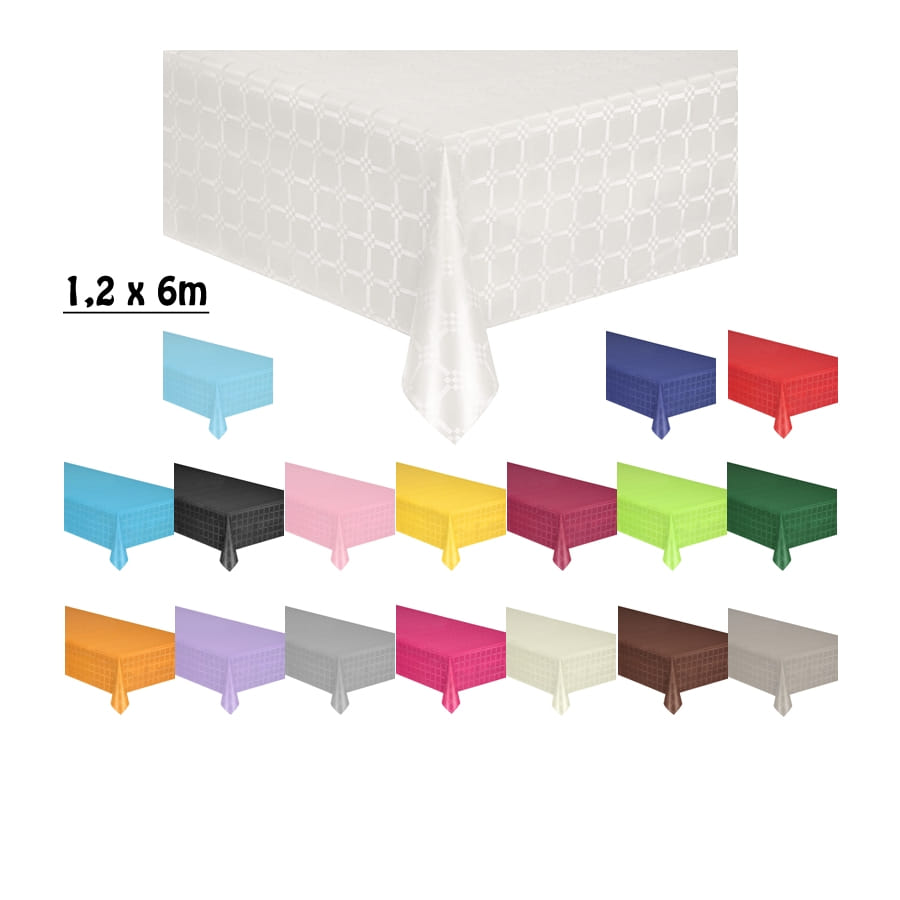 Cette Nappe en papier damassé, rouleau de 1,2 x 6m est idéale pour compléter n'importe quelle décoration lors de vos événements.