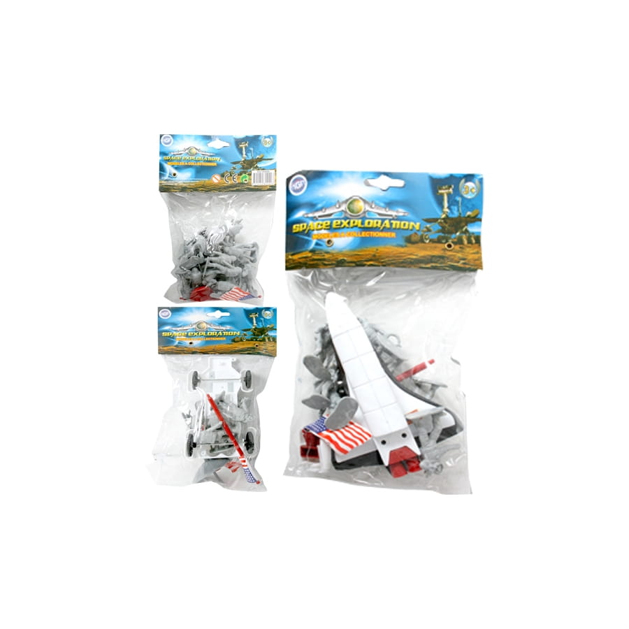 Set d'astronaute comprenant navette spatiale et jouets de l'espace. Il existe 3 modèles possibles, mais au moment de la commande, vous ne pourrez faire votre choix de modèle et en recevrez un de ceux présentés. Jouet idéal pour garçons.