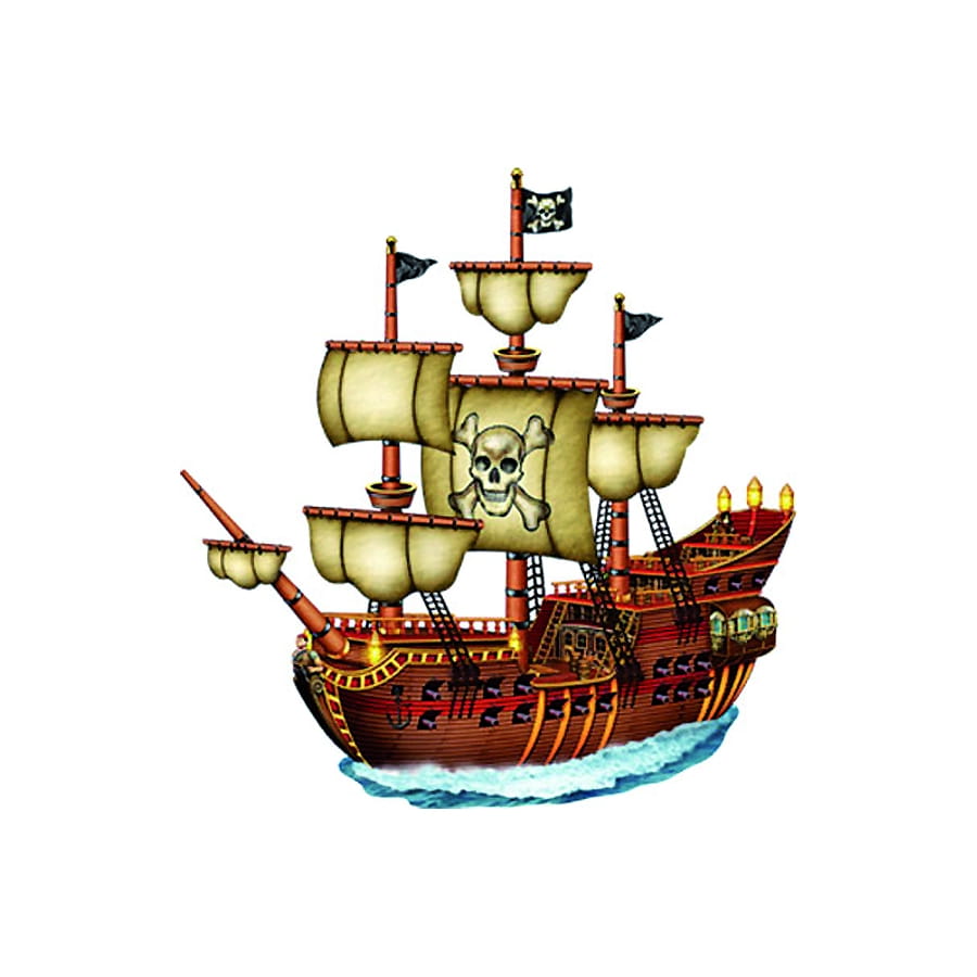 Navire de pirate en carton multicolore. Les deux faces du carton sont imprimées et mesurent 78 centimètres. Complétez votre décoration de pirate et de corsaire avec ce bateau!