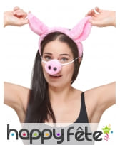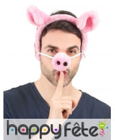 Plongez dans l'univers de la ferme et devenez le cochon le plus coquet du coin. Ce serre-tête, recouvert d'un tissu effet peluche rose tout doux, vous fera ressentir la chaleur et le confort dès que vous le porterez. Mais attendez, ce n'est pas tout! Accroché par des élastiques, un petit nez de cochon coquin d'environ 5 cm de hauteur vient ajouter la touche finale à votre transformation. Et pour que la métamorphose soit complète, deux oreilles rosées d'environ 12 cm de hauteur se dressent fièrement de chaque côté.