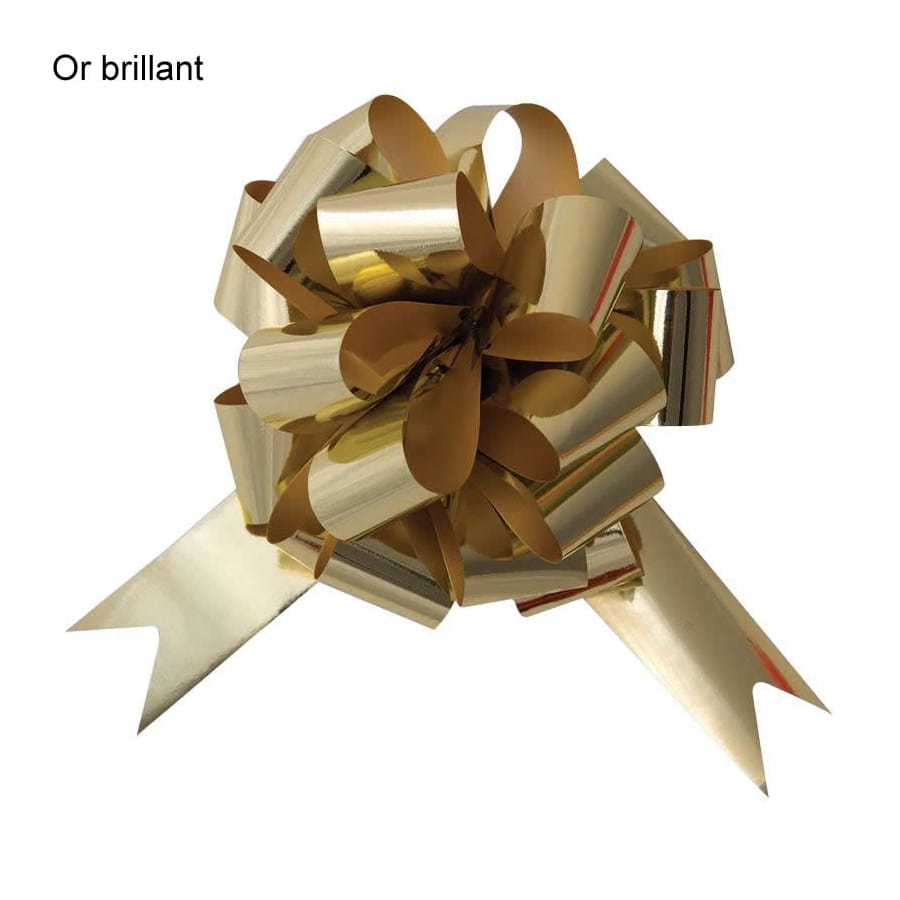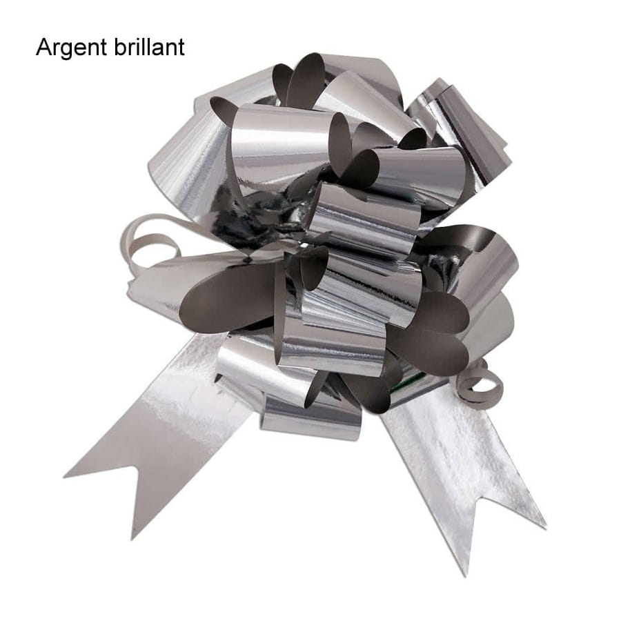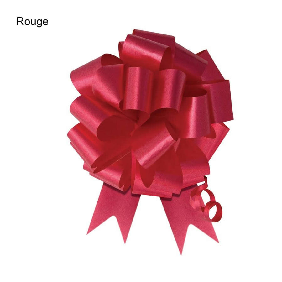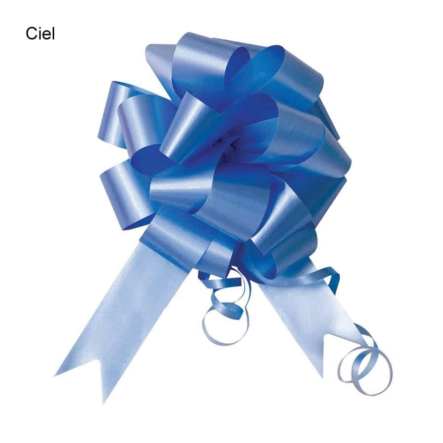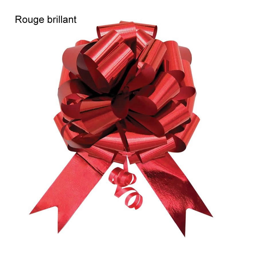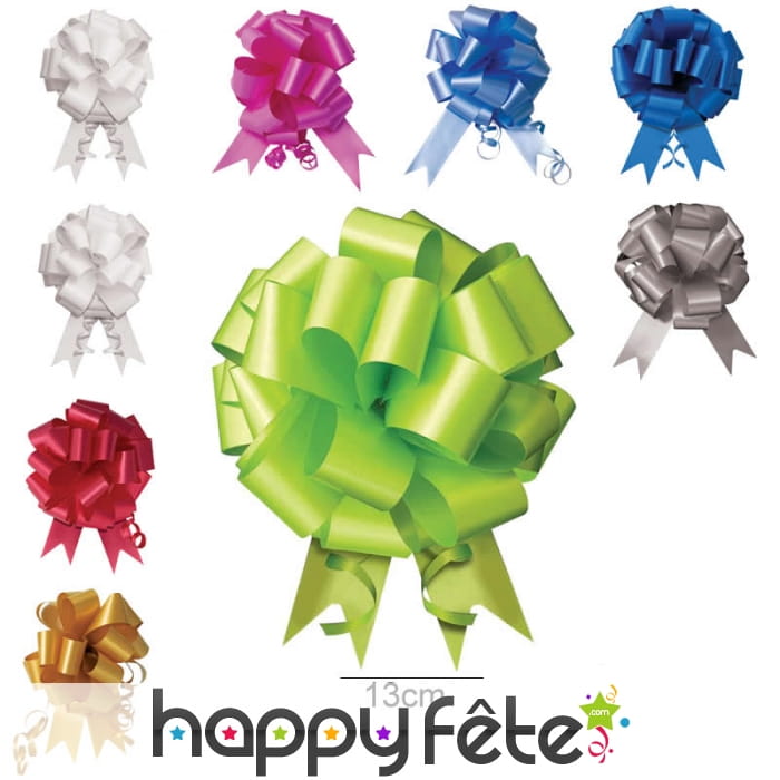 Appréciez le côté très pratique de ce noeud à tirer de 13cm pour tous vos cadeaux de Noël, d'anniversaire ou de mariage. Pas besoin d'être un as de la déco, il suffira de tirer sur les deux extrémités du ruban et le noeud se mettra en place par lui-même. Ce modèle est disponible dans les couleurs suivantes : anis, argent, blanc, bleu, ciel, fuchsia, ivoire, or, rose, rouge, argent brillant, bleu brillant, or brillant, rouge brillant et vert brillant.