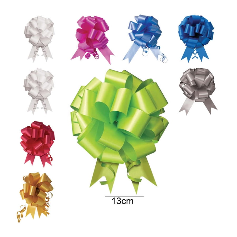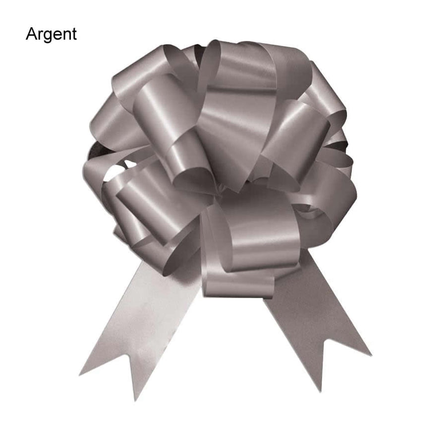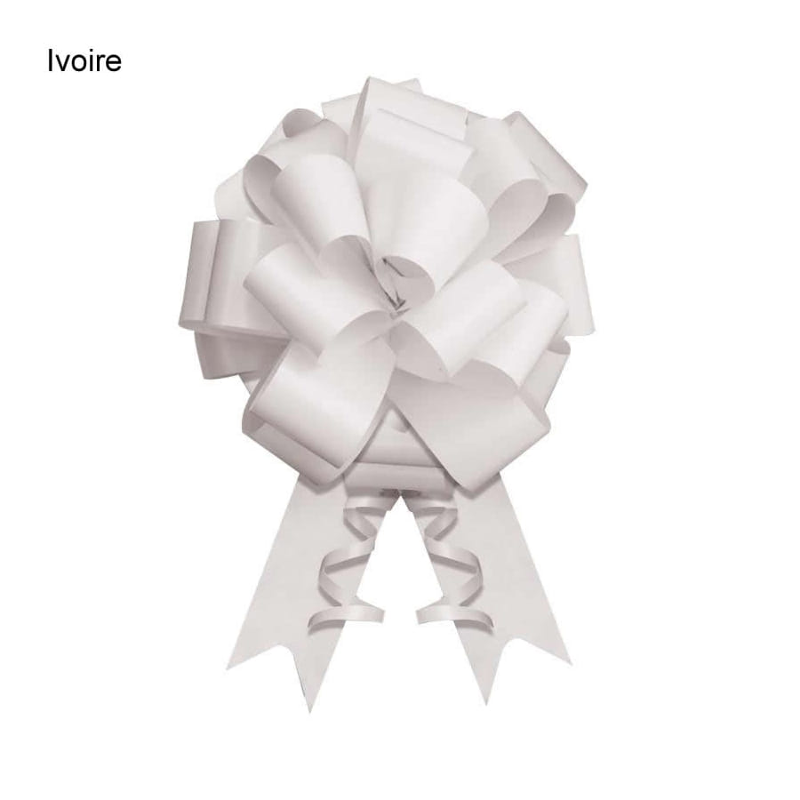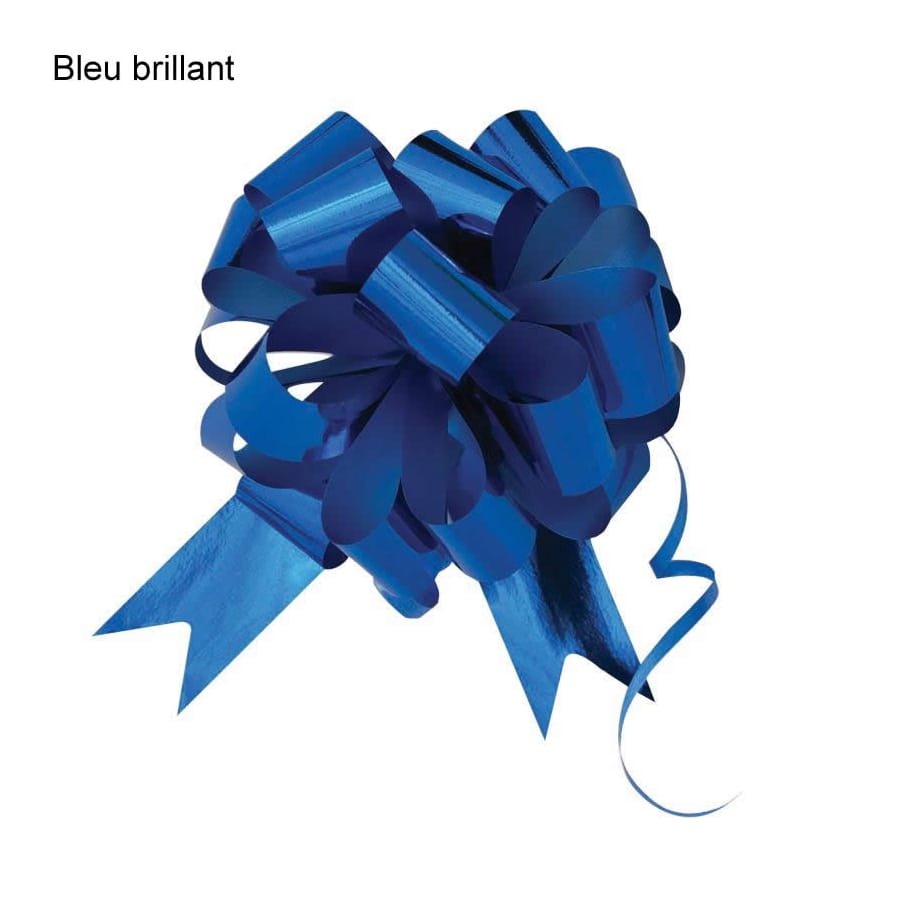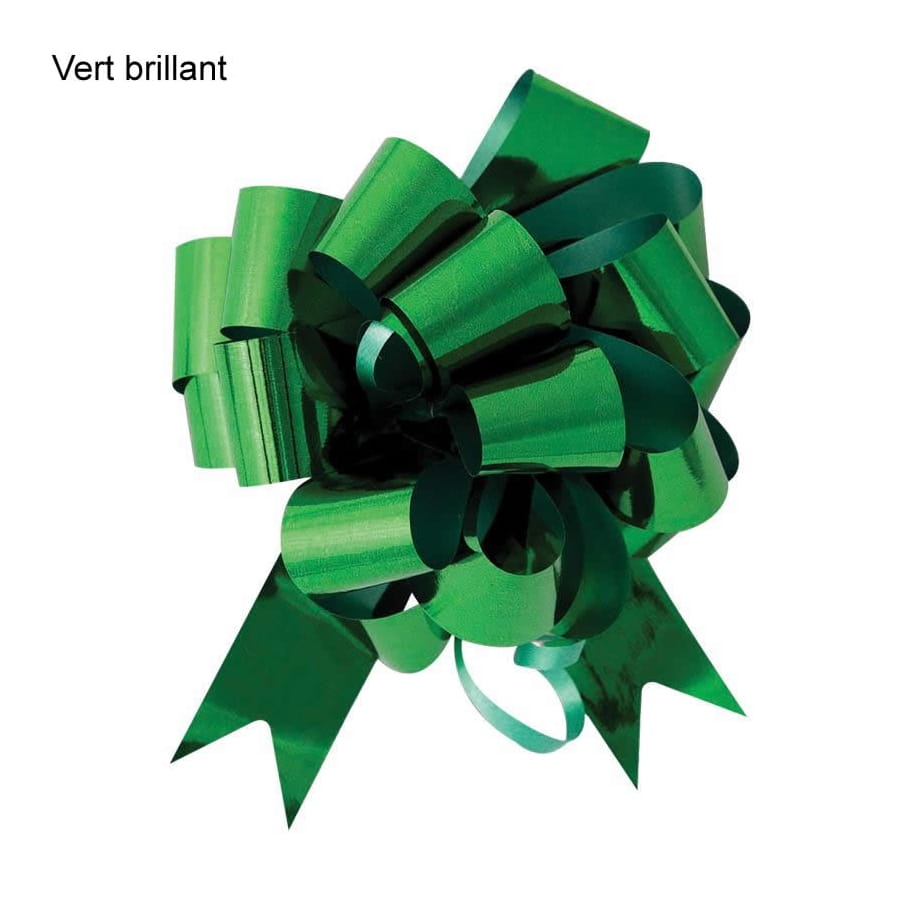 Appréciez le côté très pratique de ce noeud à tirer de 13cm pour tous vos cadeaux de Noël, d'anniversaire ou de mariage. Pas besoin d'être un as de la déco, il suffira de tirer sur les deux extrémités du ruban et le noeud se mettra en place par lui-même. Ce modèle est disponible dans les couleurs suivantes : anis, argent, blanc, bleu, ciel, fuchsia, ivoire, or, rose, rouge, argent brillant, bleu brillant, or brillant, rouge brillant et vert brillant.
