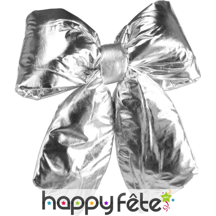 Noeud en mousse et soie métalliques de couleur argentée. Cet accessoire mesure 40 centimètres et sert de décoration intérieure. Vous pourrez le sortir pour un mariage, un anniversaire, une naissance ou pour le Nouvel An.